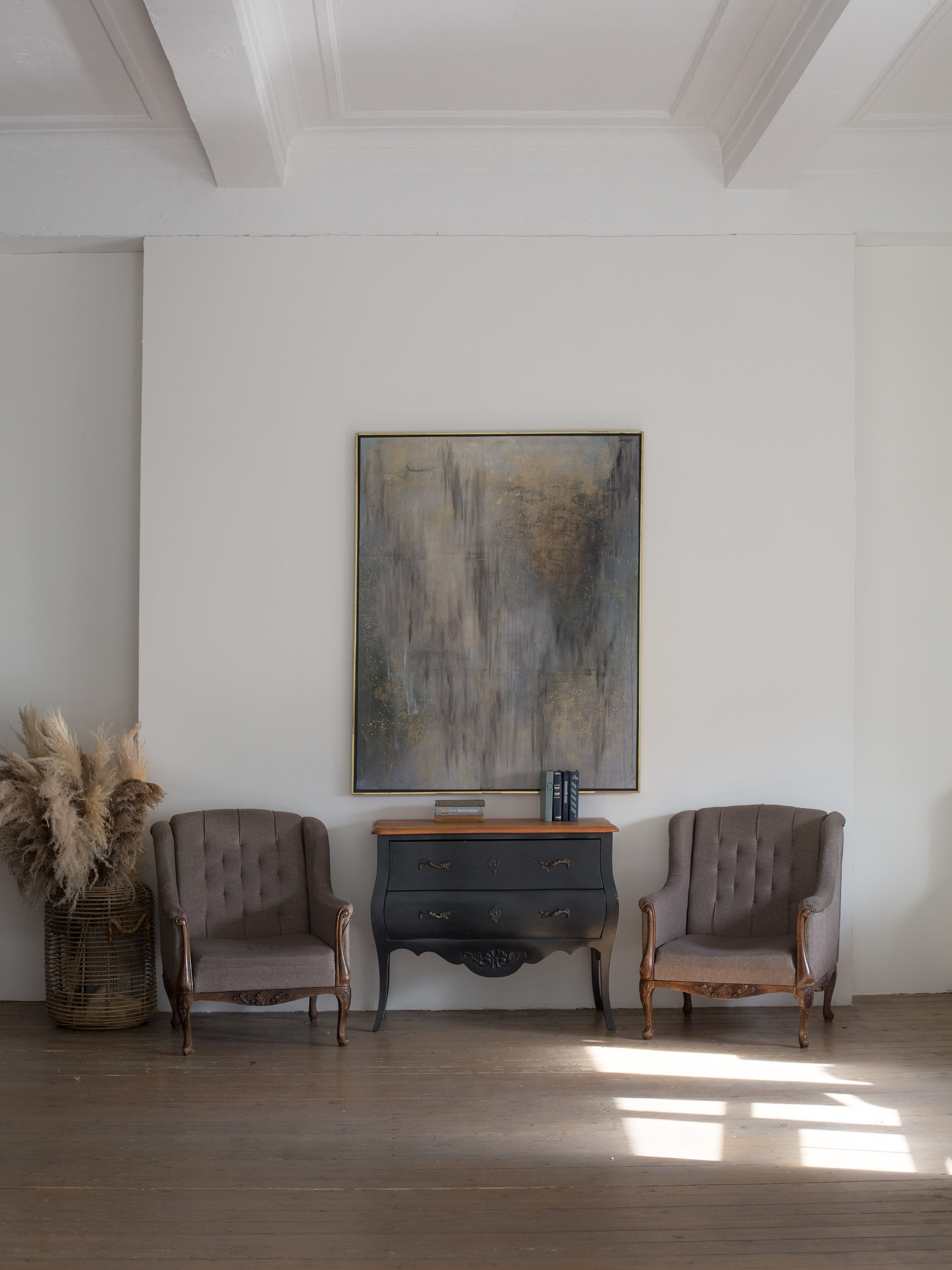 80 кв. м., высота потолков 3,8 м.