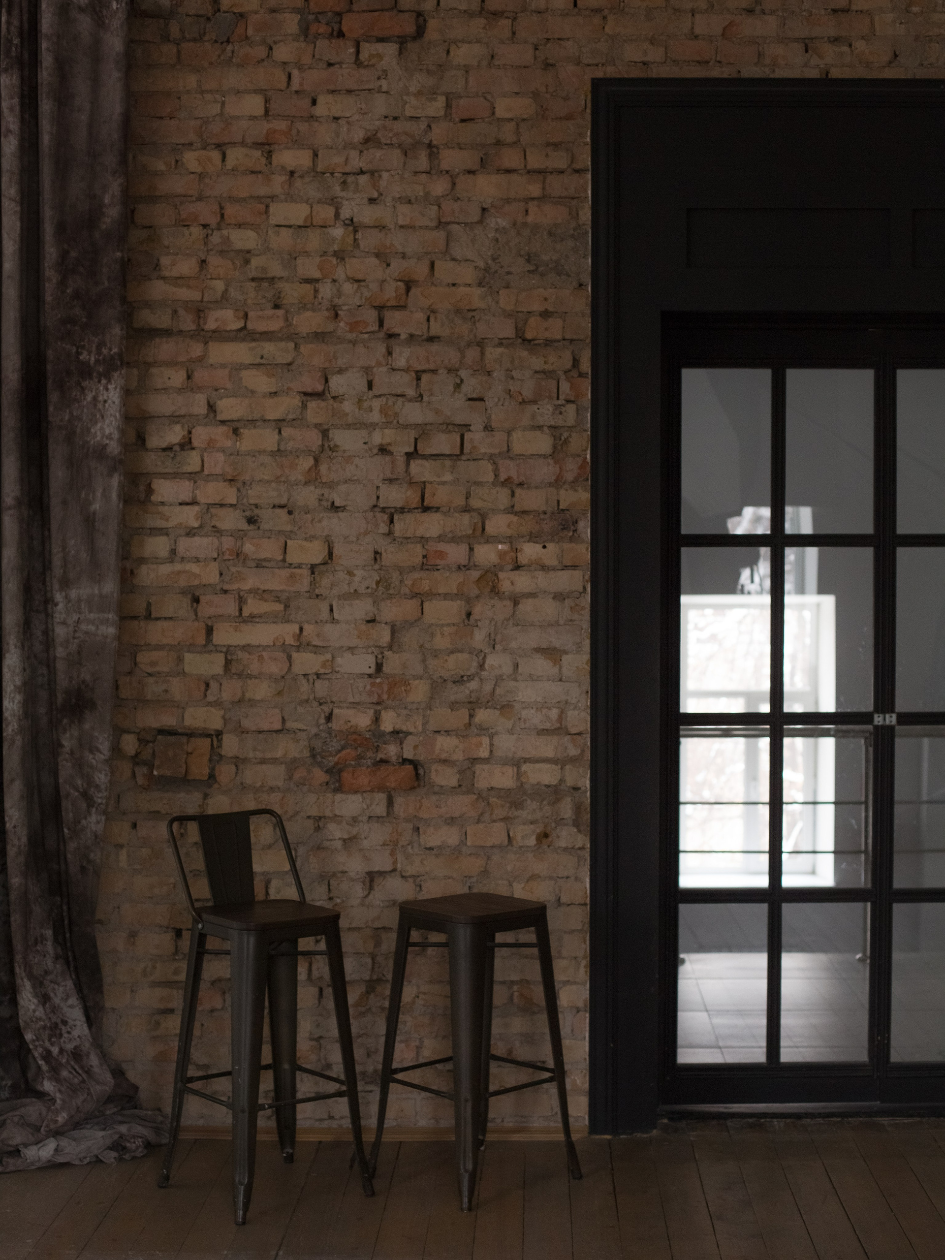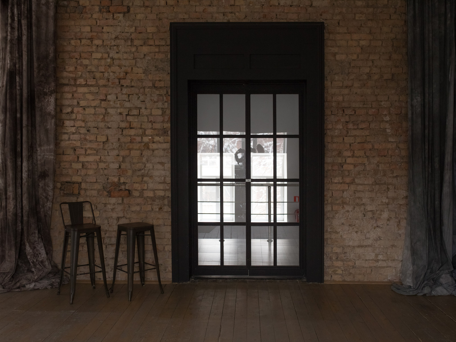 Залда бір тұрақты және үш импульсті жоғары жылдамдықты жарық көзі бар. 2 ту, қағаз фондар (сарғыш, ашық сұр), 4 мата фоны.