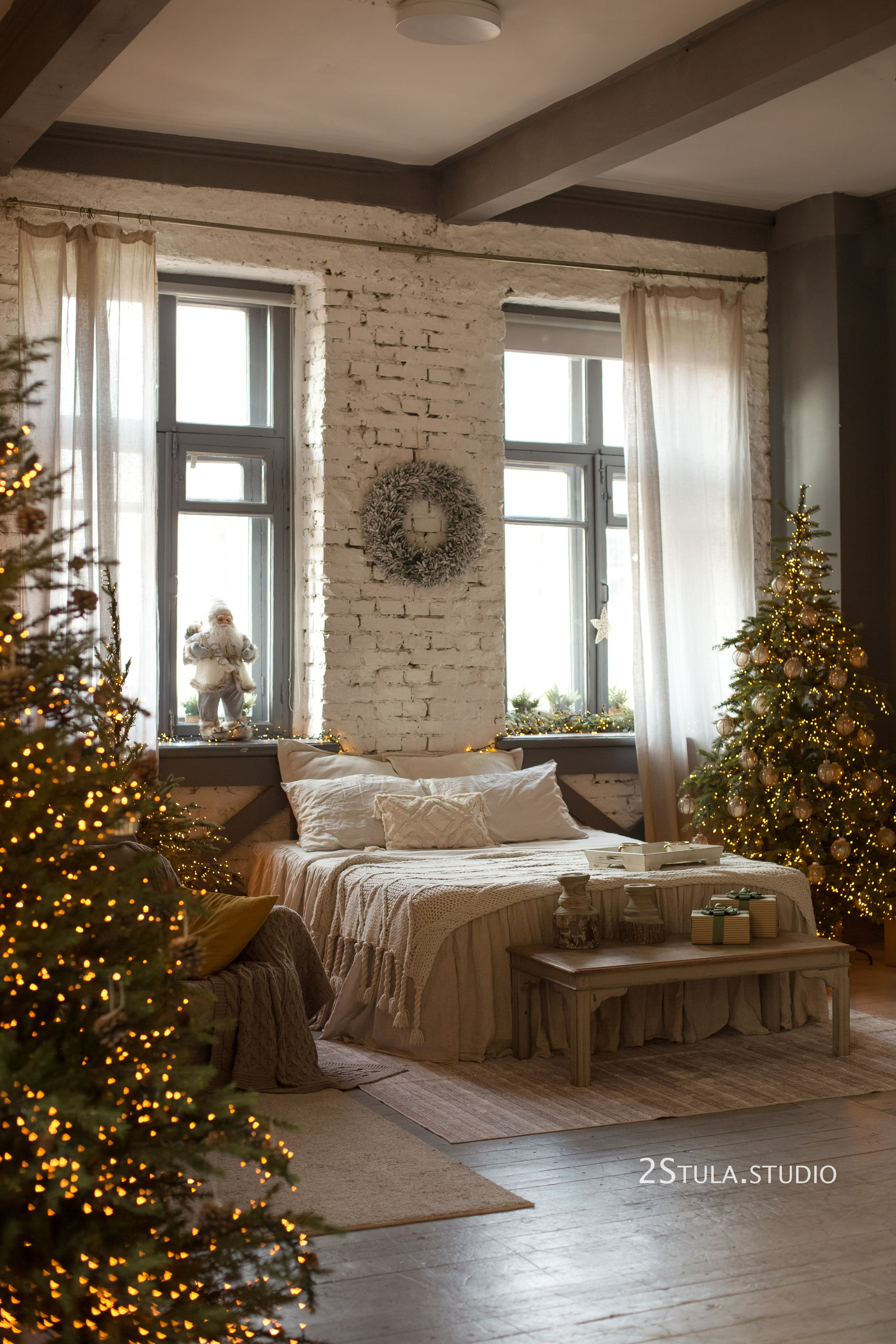 Залдың терезелері оңтүстікке (2 терезе) және батысқа (2 терезе) қаратылған.