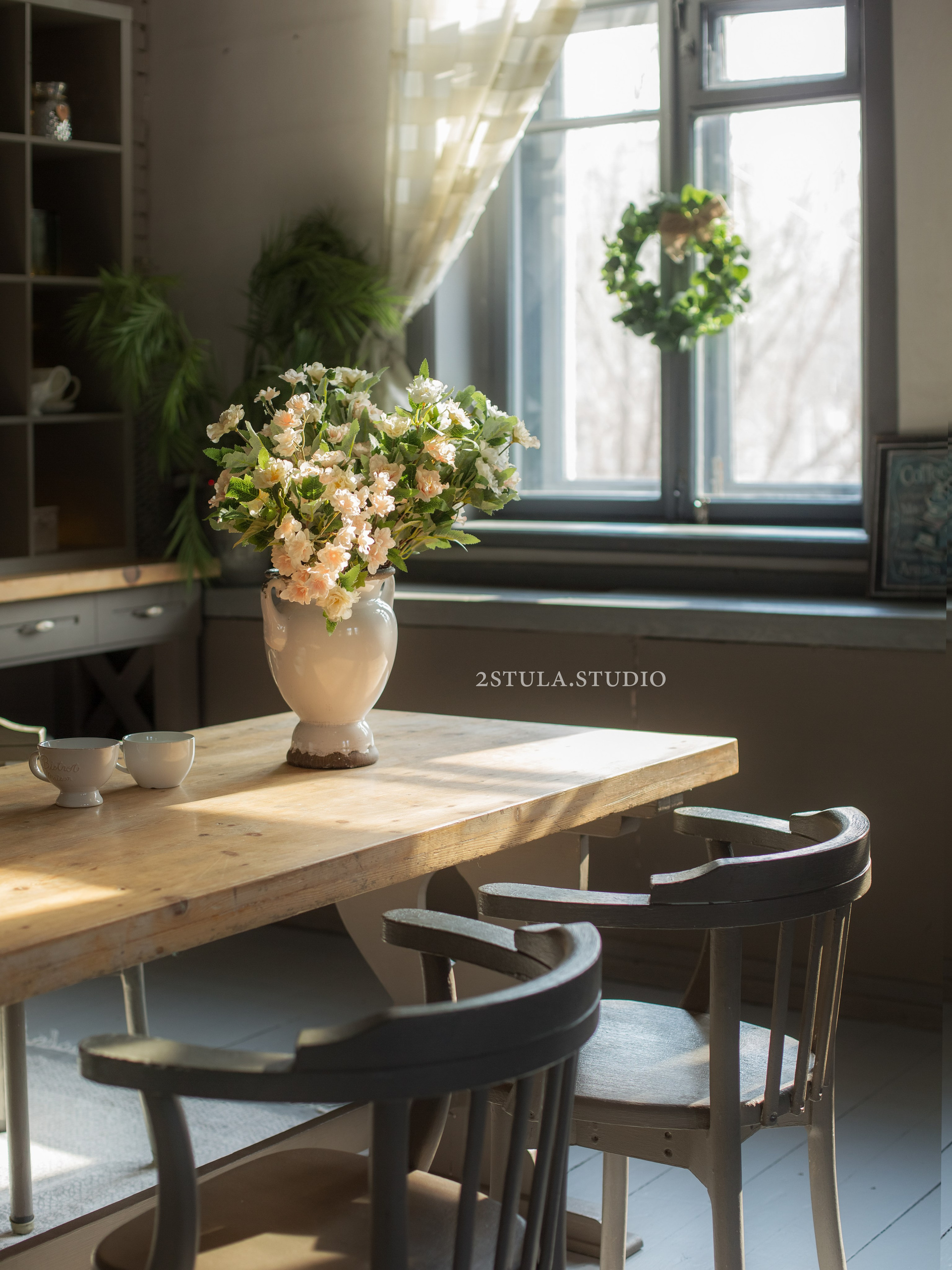 Залдың терезелері оңтүстікке (2 терезе) және батысқа (2 терезе) қаратылған.