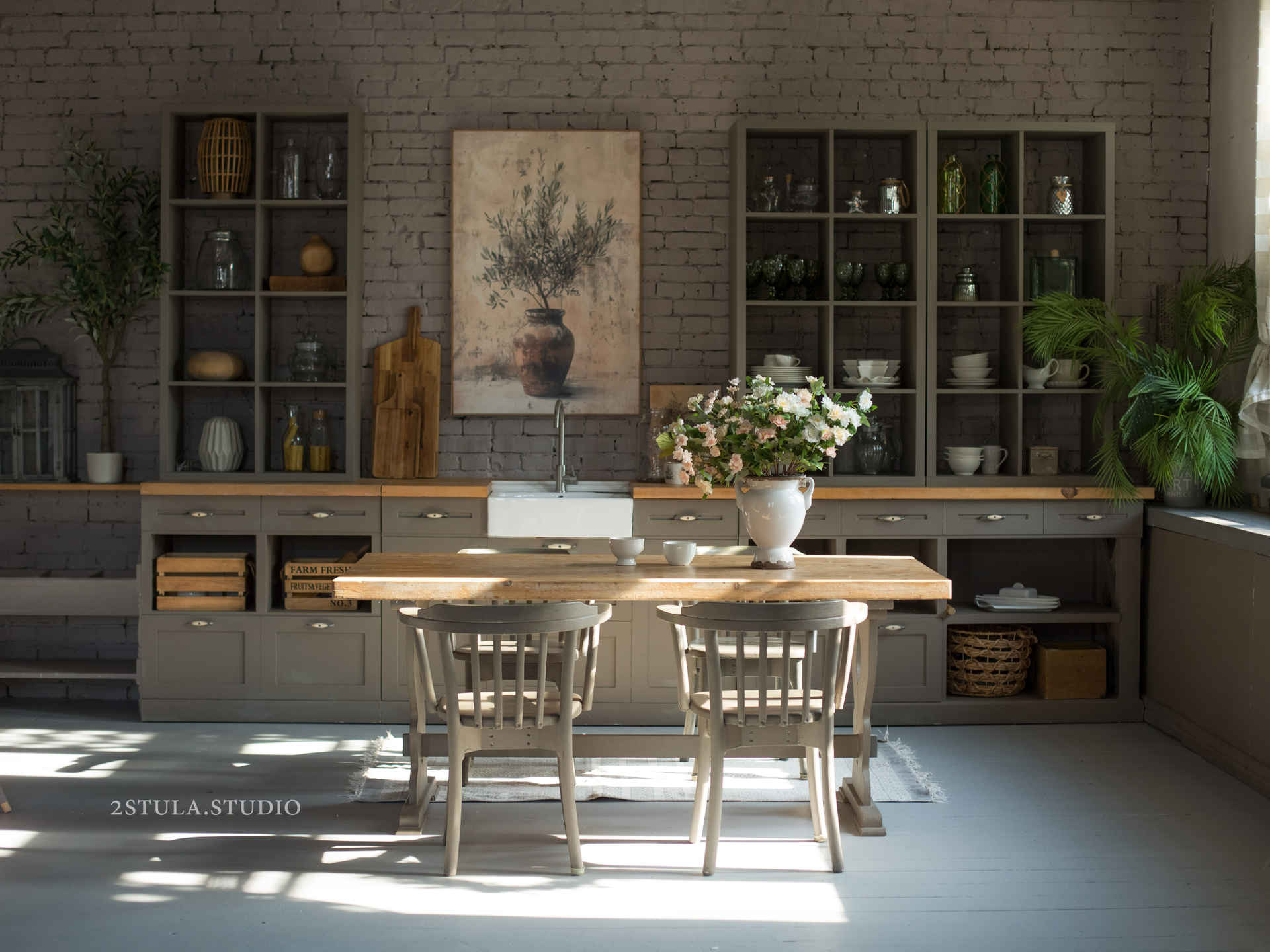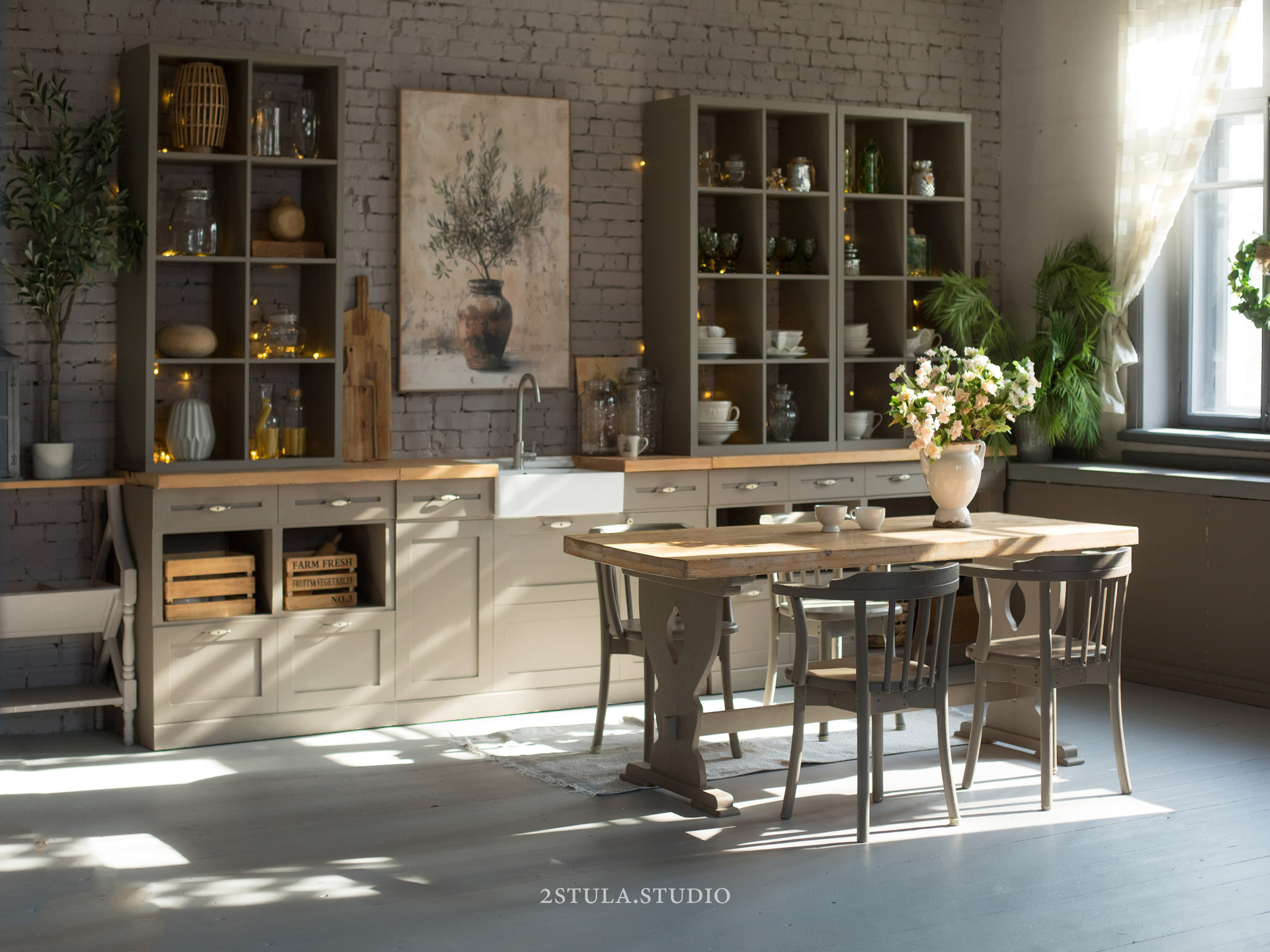 70 кв. м., высота потолков 3,8 м.
